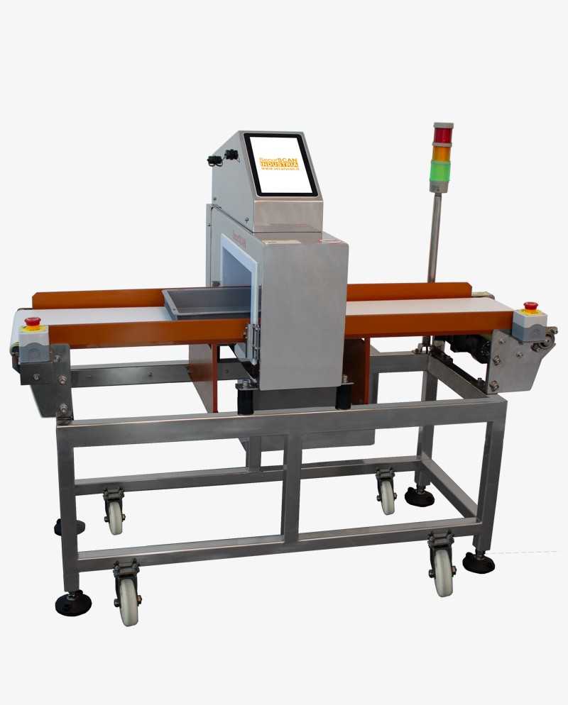Ce détecteur de métaux sophistiqué est capable d’identifier les éclats ou les morceaux de métal dans les produits, de bloquer la bande transporteuse et, si nécessaire, d’expulser le produit contaminé grâce à des systèmes d’alarme visuels et acoustiques efficaces.